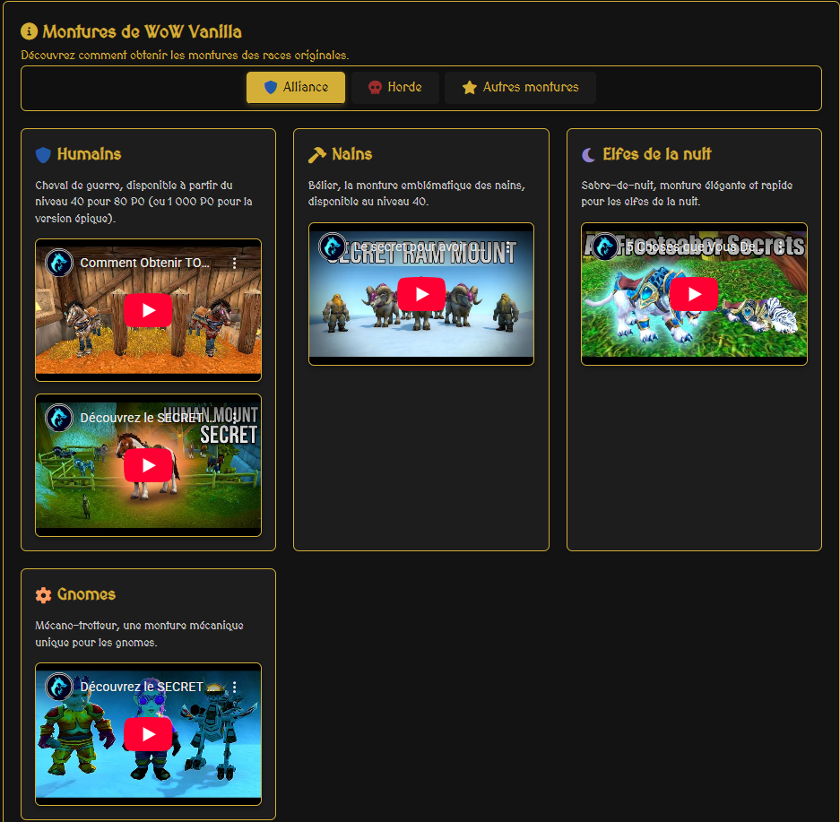 Sur cette page vous allez avoir toutes les informations sur les montures de World of Warcraft pour toutes les extensions.